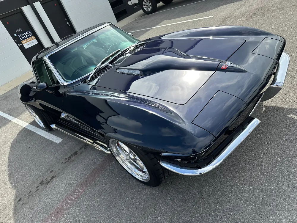 View the Full Project Breakdown- A fully corrected and ceramic coated split window Corvette restomod, captured from the rear three-quarter angle.